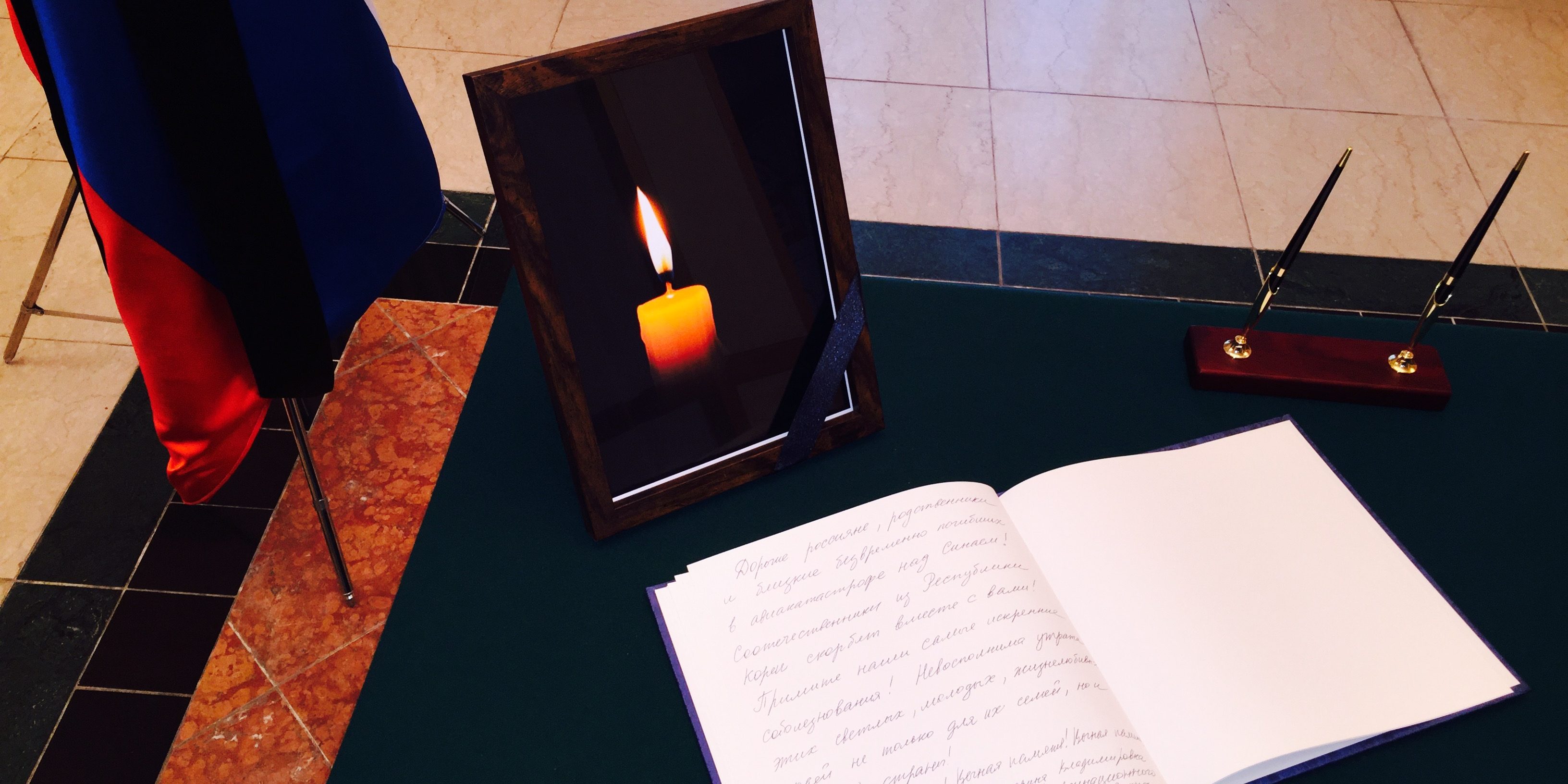 Председатель Координационного совета организаций российских соотечественников Екатерина Владимировна Попова от имени и по поручению Членов КСОРС в РК сделала запись в траурной книге, открытой в Посольстве РФ в связи с крушением Российского лайнера в Египте: «Дорогие россияне! Родственники и близкие безвременно погибших в авиакатастрофе над Синаем! Соотечественники в Республике Корея скорбят вместе с вами. Примите наши самые искренние соболезнования. Невосполнима утрата этих светлых, молодых жизнелюбивых людей не только для их семей, но и для всей страны. Вечная память… Вечная память… Вечная память…»