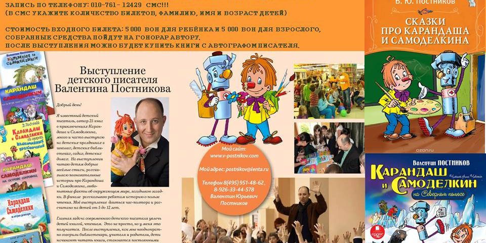Приглашаем вас и ваших детей на выступление известного детского писателя Валентина Постникова!