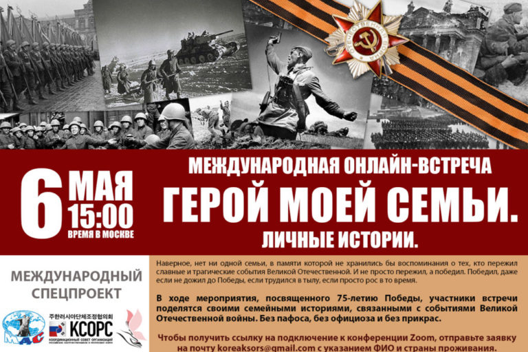 6 мая в 21:00 (время в Сеуле) (15:00 время в Москве) на платформе Zoom состоится международная онлайн-встреча «Герой…