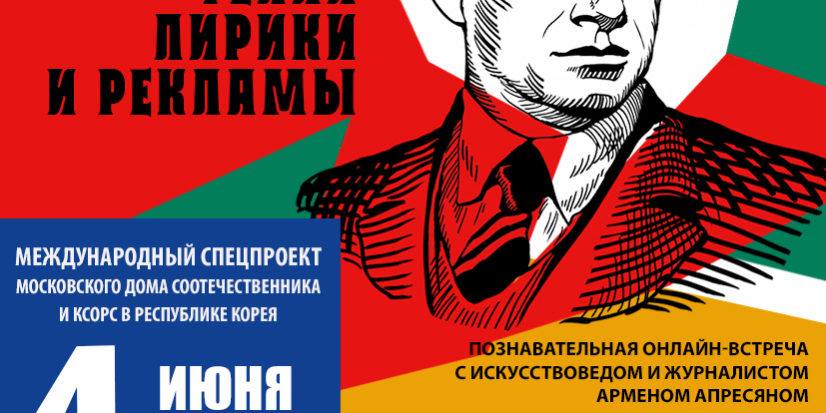 4 июня (четверг) в 19:00 (время в Сеуле) (московское время 13:00) на платформе Zoom пройдет онлайн-лекция известного российского искусствоведа и журналиста Армена Апресяна, посвященная Владимиру Маяковскому.
