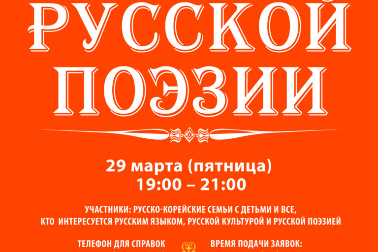 КСОРС в РК при поддержке ФА «Россотрудничество» в Корее приглашают всех на праздник русской поэзии! Приглашаются русско-корейские семьи…