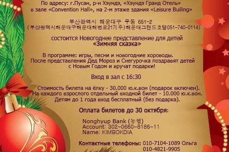 Новогоднее представление для детей в Пусане. 19 декабря. Новогоднее представление для детей в Сувоне. 26 декабря Новогоднее…