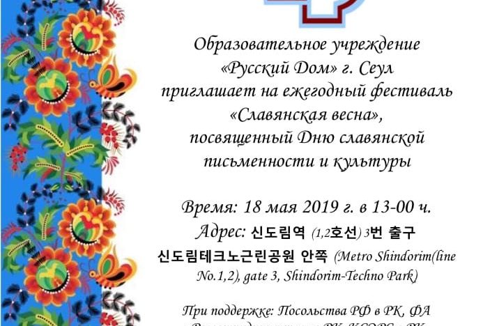 Приглашаем вас на ежегодный фестиваль «Славянская весна», посвященный дню славянской письменности и культуры. Организаторы: ОУ «Русский дом», при…