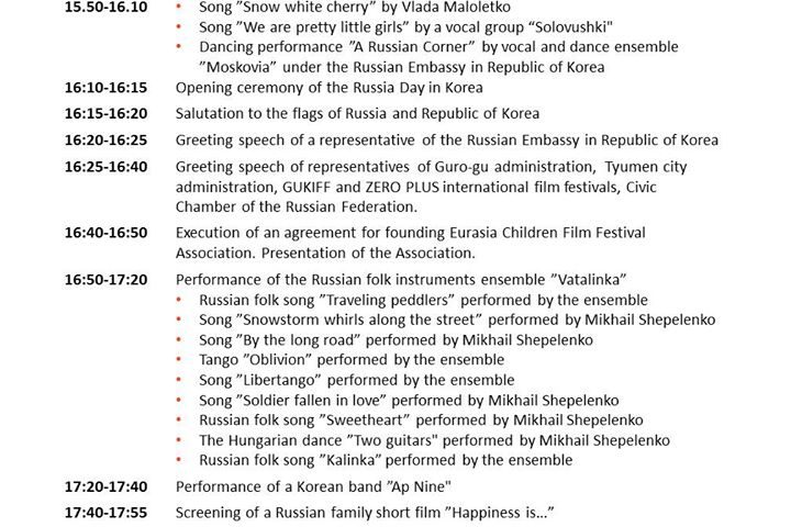 Приглашаем на День российской культуры в рамках Международного детского кинофестиваля (Сеул, Гуро)! Программа открытия в афише. http://www.guroartsvalley.or.kr/ Адрес:…