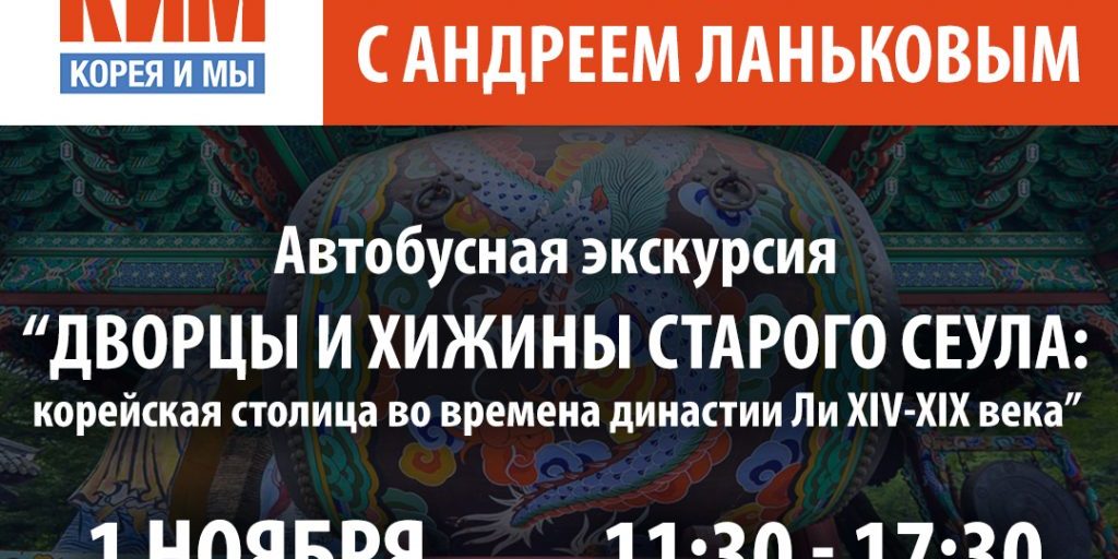 1 НОЯБРЯ — Автобусная экскурсия с Андреем Ланьковым «Дворцы и хижины старого Сеула: корейская столица во времена династии Ли XIV-XIX века» — https://forms.gle/uaLKSWCwh4TzG4xu5