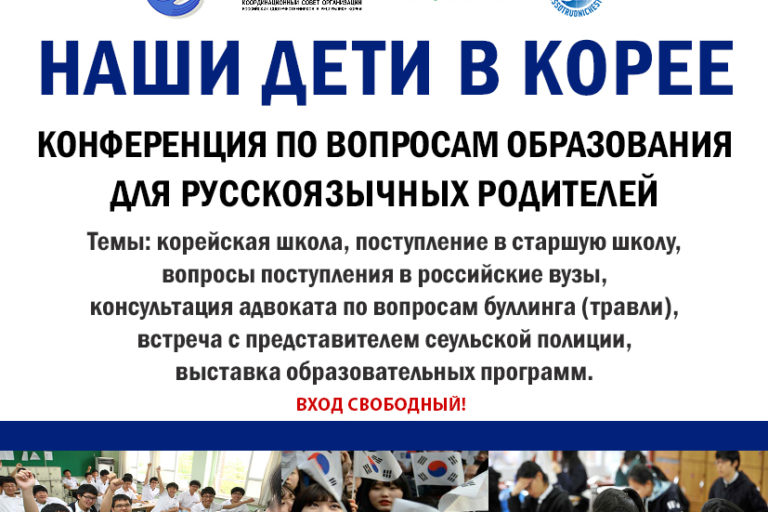 6 октября (воскресенье) состоится конференция по вопросам образования для русскоязычных родителей «Наши дети в Корее». Организатор Ассоциация русскоязычных…