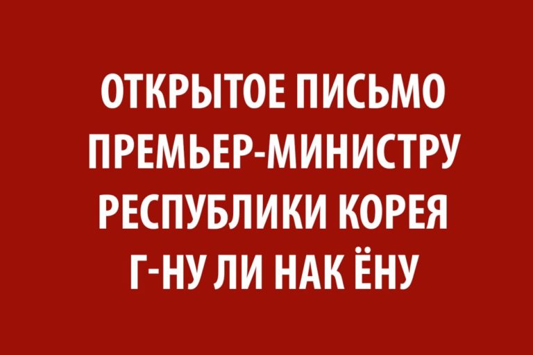 Открытое письмо Премьер-министру Республики Корея г-ну Ли Нак Ёну