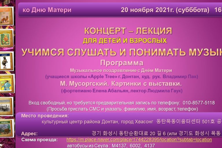 КОНЦЕРТ – ЛЕКЦИЯ посвященный Дню матери для детей и взрослых «Учимся слушать и понимать музыку» 20 ноября 2021г.…