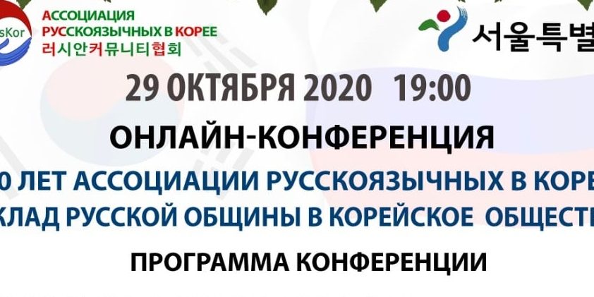 Ассоциация русскоязычных в Корее приглашает на онлайн-конференцию «10 лет Ассоциации русскоязычных в Корее. Вклад русской общины в корейское общество», которая пройдет в рамках Х Фестиваля российско-корейской дружбы «МИЛЛИОН АЛЫХ РОЗ-2020».