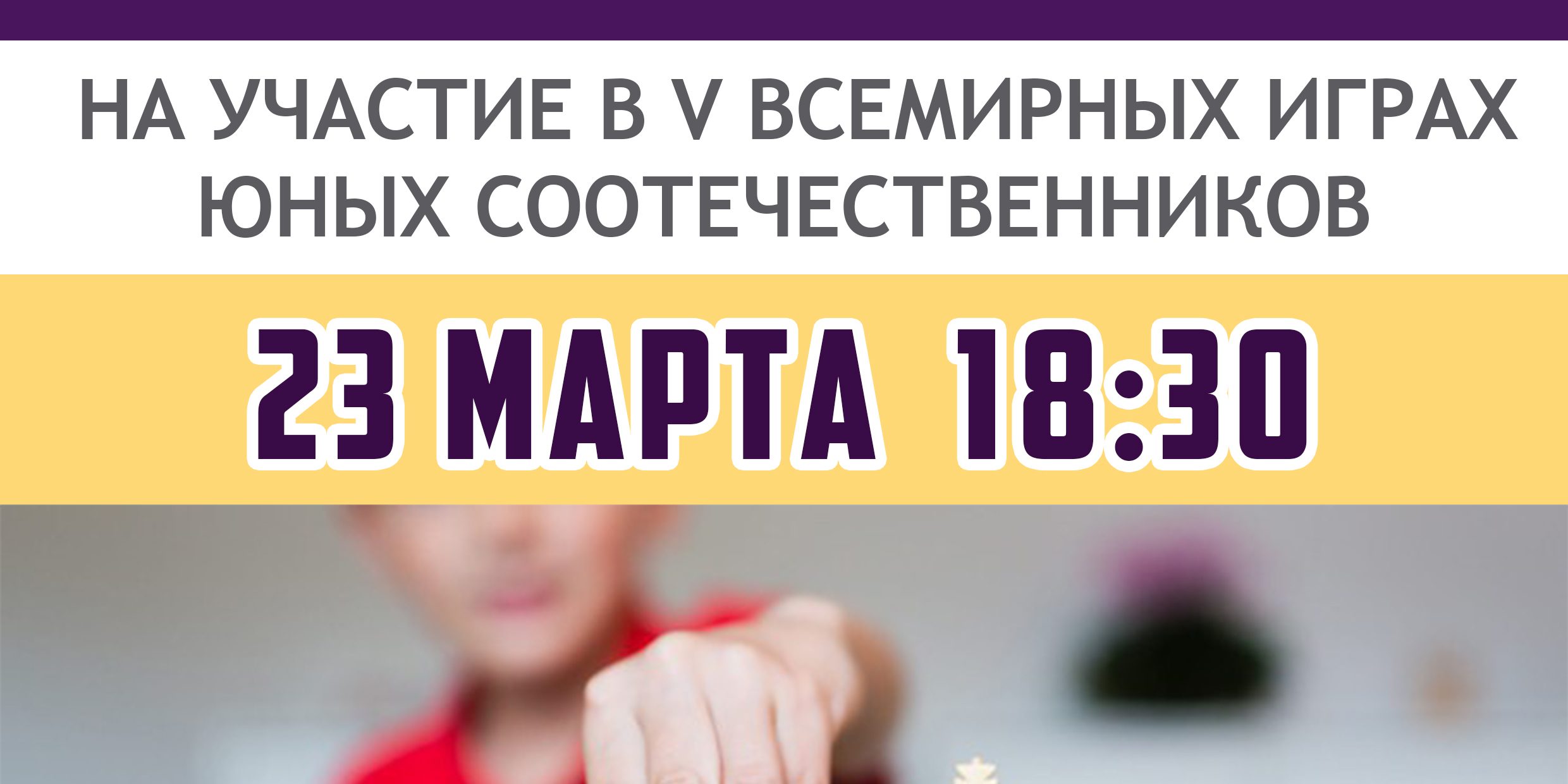 23 марта в 18:30 пройдет отборочный шахматный турнир, по итогам которого будет сформирована команда от Кореи для участия в V Всемирных играх юных соотечественников в г. Ханты-Мансийске (31 мая — 6 июня 2019 г.)