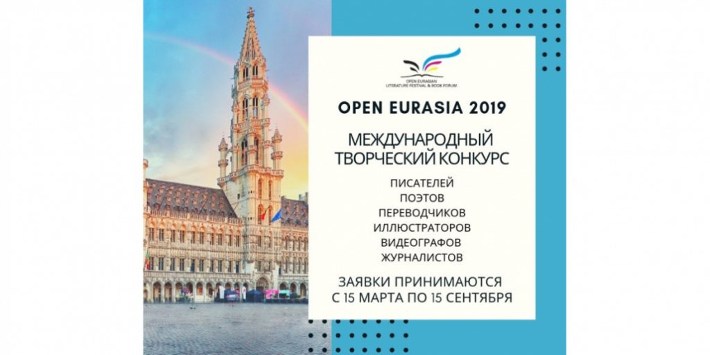 Open Eurasia (Открытая Евразия) – это международный творческий конкурс, который восьмой год объединяет творческих людей со всего земного шара. Писатели, поэты, переводчики, иллюстраторы, видеографы и публицисты будут бороться за призовые места и 10 денежных премий в общей сумме 31000$, которые пойдут на издание книг или поездку на ежегодный фестиваль Open Eurasian Book Forum & Literature Festival в 2020 году.
