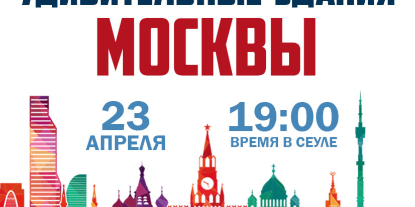 Онлайн-лекция «Удивительные здания Москвы» состоится 23 апреля в 19:00 (время в Сеуле) на платформе Zoom.