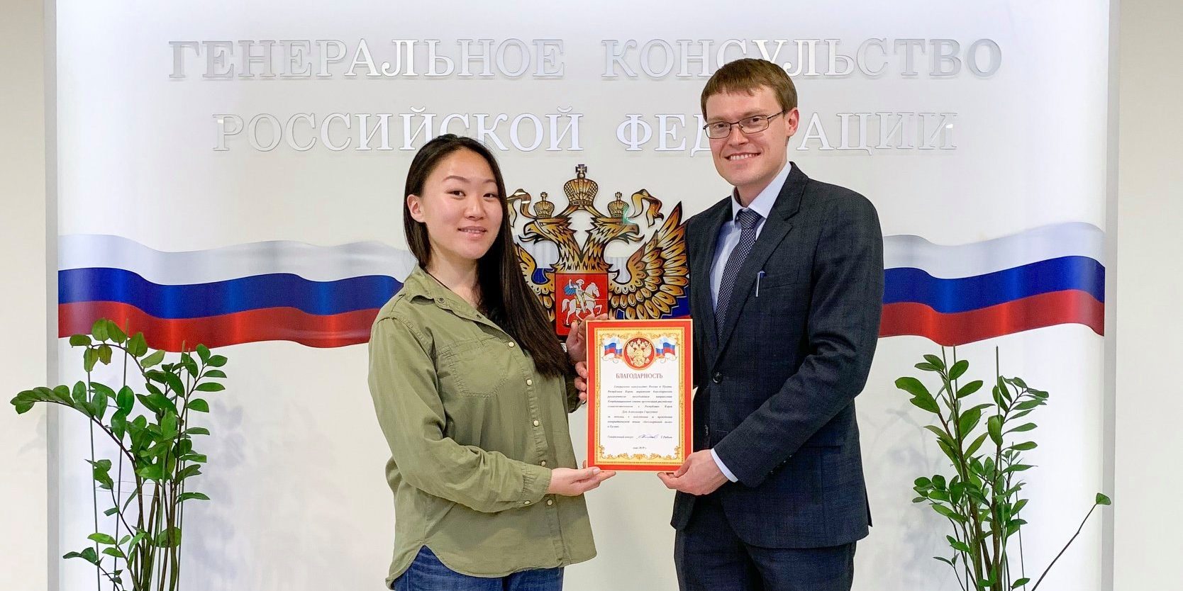 16 мая в Генеральном Консульстве России в Пусане были вручены свидетельства и благодарственное письмо за участие волонтеров от Молодежного направления КСОРС Корея в мероприятиях, посвященных празднованию Дня Победы в Великой Отечественной войне, прошедших 6 мая 2019 в городе Пусан, Республика Корея.