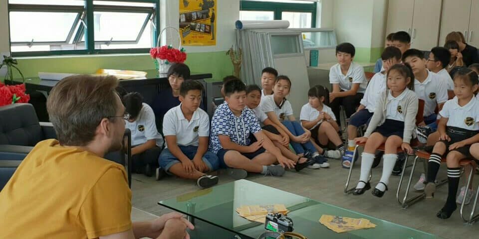 Фильм Александра Ханта «Как Витька Чеснок вёз Лёху Штыря в дом престарелых» не оставил никого равнодушным, а открытый финал вызвал немало споров между учениками. Поэтому в предвкушении неожиданной встречи с режиссером, фильм которого вызвал столько споров и вопросов, дети быстро и организованно заняли места… И замолчали, разглядывая пришедшего, как гостя с другой планеты.